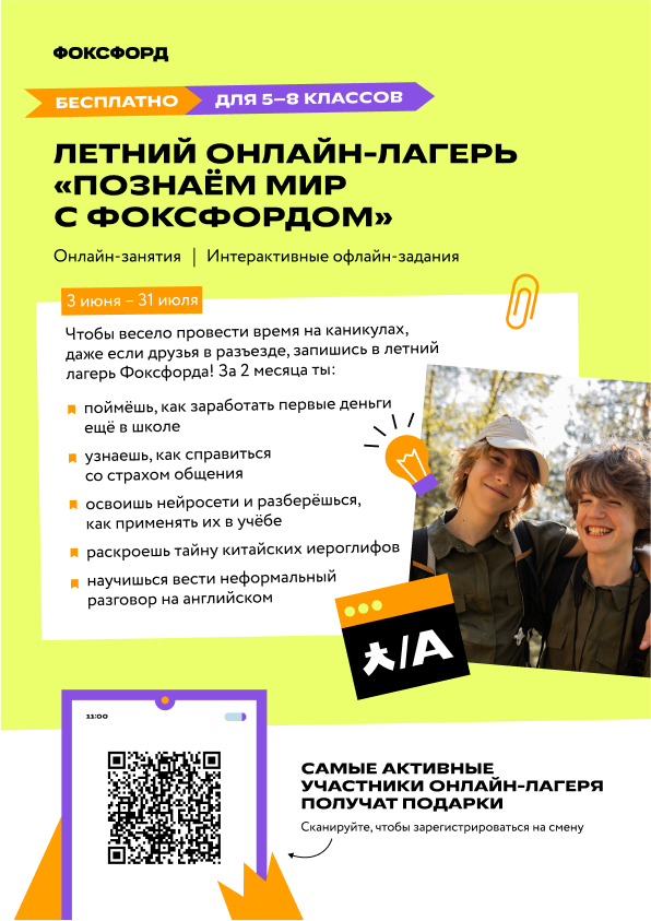 Не скучайте летом, даже если друзья в разъезде, — приходите на бесплатную смену «Познаём мир с Фоксфордом» в онлайн-академию