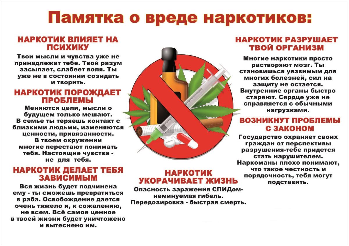 ПОМНИ, КАКОЙ ВРЕД ПРИНОСЯТ ЧЕЛОВЕКУ НАРКОТИКИ!