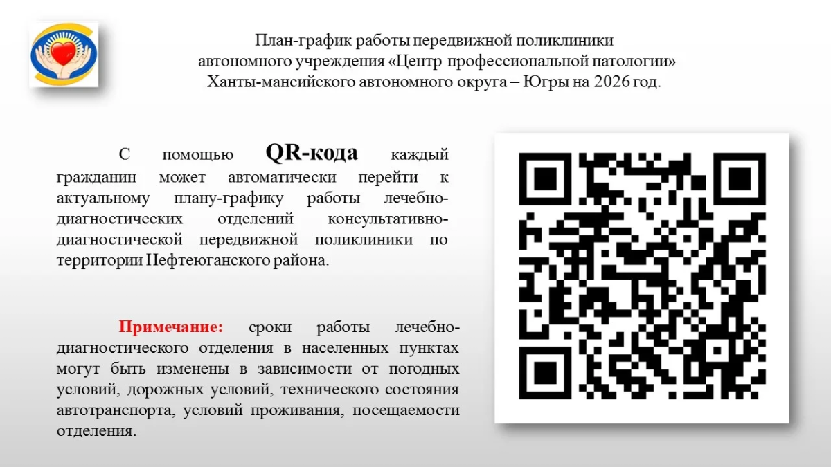 QR-код с помощью которого каждый гражданин может автоматически перейти к актуальному плану-графику работы лечебно-диагностических отделений консультативно-диагностической передвижной поликлиники автономного учреждения Ханты-