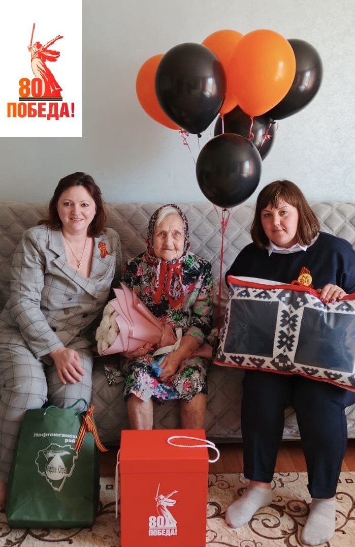 «9 Мая — праздник великий! Никто не забыт и ничто не забыто! Живым ветеранам — низкий поклон! А тех, что ушли — не забудем имен!». В преддверии празднования юбилейного Дня Победы в Великой Отечественной войне специалисты БУ ХМАО-Югры «Нефтеюганский районный комплексный центр социального обслуживания населения» поздравили тружеников тыла с наступающим праздником. Для создания праздничной атмосферы и весеннего майского настроения ветеранам были подарены композиции из воздушных шаров цвета георгиевской ленты и букеты цветов. От Губернатора Югры Кухарука Руслана Николаевича вручены именные поздравительные подарки и открытки. Низкий поклон, пожелания здоровья и долгих лет жизни выражаем ветеранам: Алимбекову А.А., Дерябиной А.П., Шмаковой С.К., Парамоновой А.Г., Кулишовой М.А. Поздравляем всех жителей нашей прекрасной страны с Днём Победы!!! Желаем мирного неба над головой, здоровья и долгих лет жизни. Мир! Май! Победа!